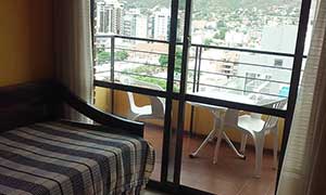 Alquiler departamento de 1 dormitorio para 3 personas, con baño, cocina comedor y balcón con vista al centro. Aire, TV y Wi Fi